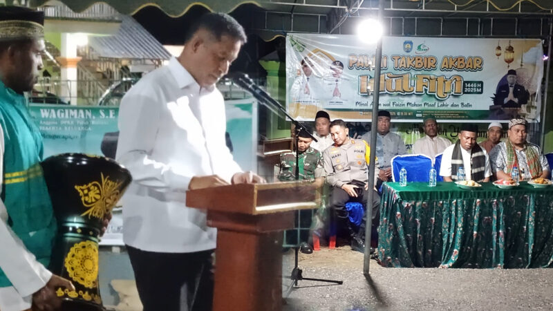 Sementara itu Wakil Ketua PHBI Amir Efun menyampaikan terimakasih kepada Pemerintah Daerah, beserta TNI POLRI yang telah membantu terselenggaranya kegiatan Takbir Akbar dan telah berjalan dengan baik hingga selesai dan besok 31 Maret 2025, dilanjutkan dengan Sholat Id berjamaah Hari Raya Idulfitri 1446 H bertempat di Lapangan Gedung Serba Guna (GSG) pukul 07.00 WIT.