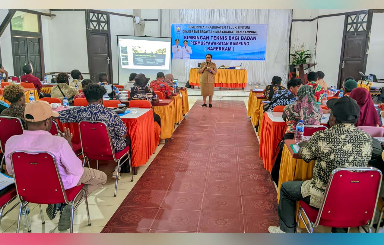 BINTUNI,newsline.id – Dalam Rangka Penguatan Kapasitas BAPERKAM, Dinas Pemberdayaan dan Kampung Kabupaten Teluk Bintuni melaksanakan Bimbingan Teknis (BIMTEK) kepada sekitar 120 anggota BAPERKAM dari 115 Kampung di Kabupaten Teluk Bintuni, Giat dilaksanakan di Aula St. Yohanis KM2, Selasa(28/10/2025) pagi.