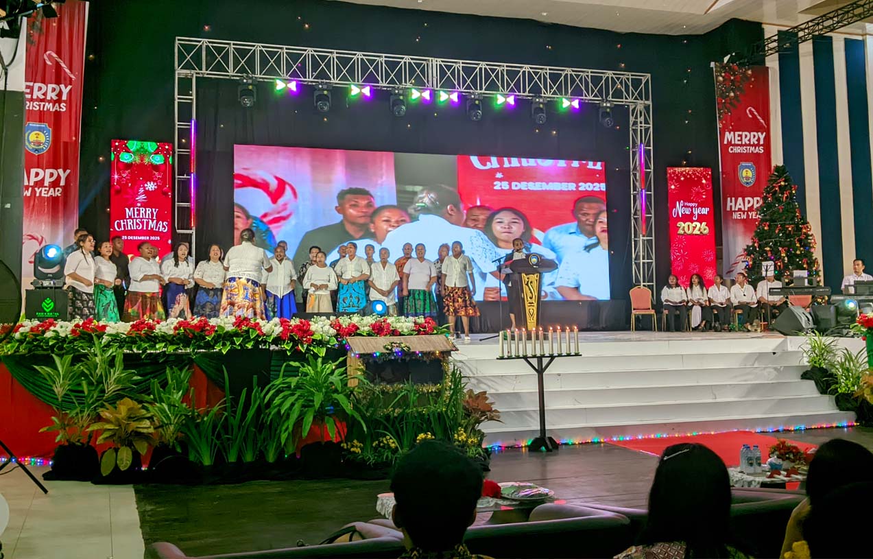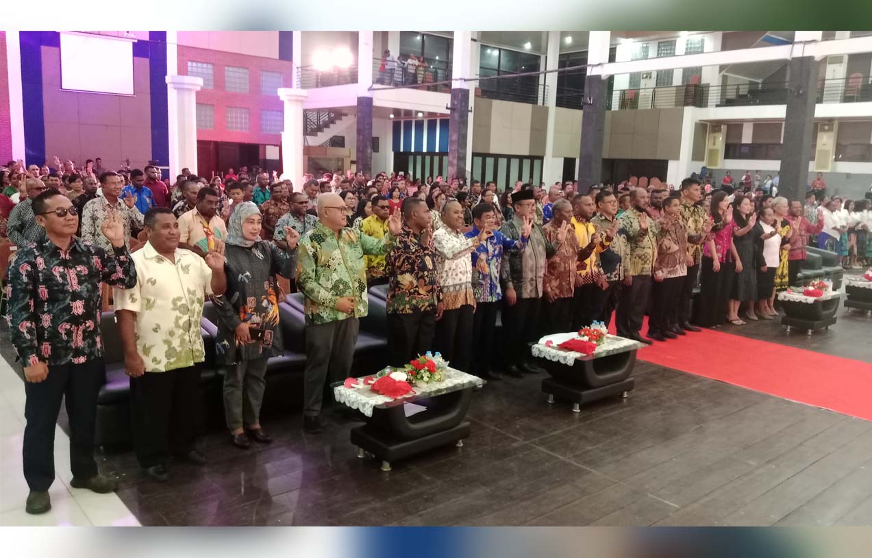 Ibadah Perayaan Natal 2025 dan Lepas Sambut Tahun Baru 2026, Pemerintah Daerah, TNI, POLRI, dan Masyarakat Kabupaten Teluk Bintuni, dan berlangsung di Gedung Serbaguna GSG, Jumat(09/01/2026) Petang.