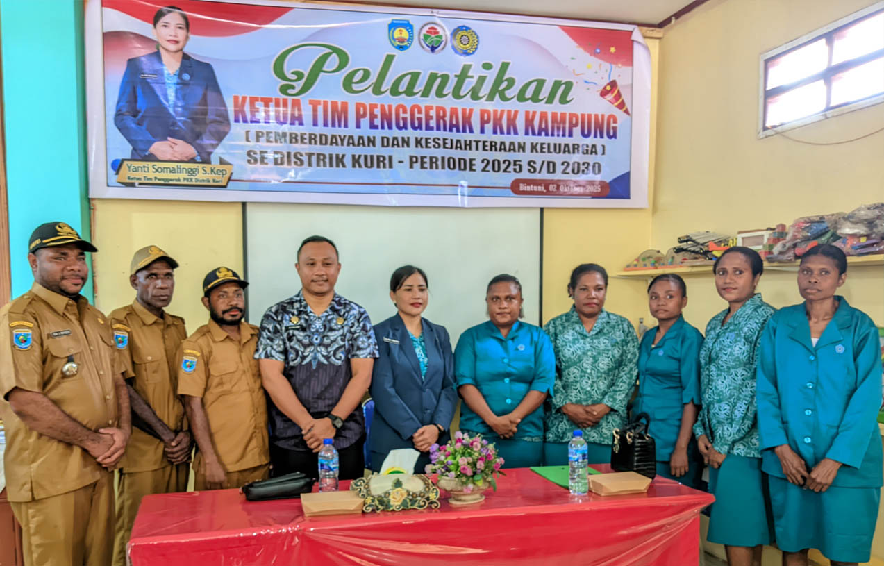 BINTUNI, newsline.id – Ketua Tim Penggerak Pemberdayaan dan Kesejahteraan Keluarga (TP-PKK) Distrik Kuri Ny. Yanti Somalinggi melantik Ketua-ketua Tim Penggerak PKK Kampung se Distrik Kuri masa Bhakti 2025 sampai dengan 2030, bertempat di Bintuni, Kamis, (02/10/2025).